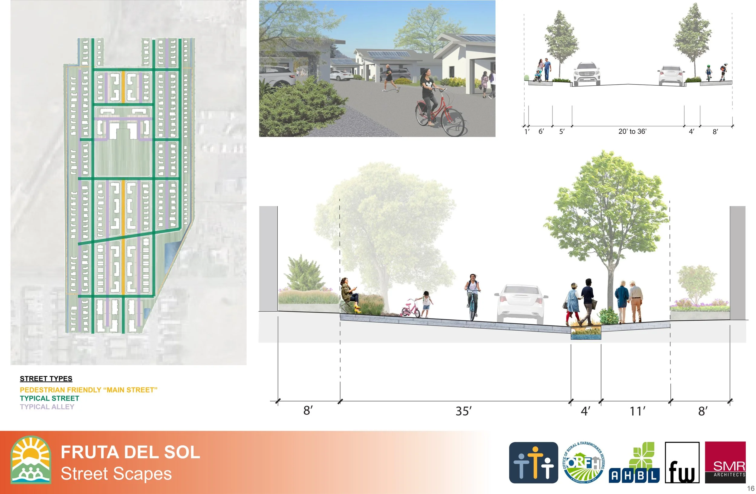The resulting design accommodates 200 affordable homes set along walkable streets and centered around a community center and green space. A kit of parts offers floor plans for 2-bed, 3-bed, 4-bed, and apartment buildings, which are laid out onto 3 street types that prioritize multi-modal transit and greenery. The resulting design offers the client a well-thought out yet flexible strategy for providing high quality housing in a well-connected neighborhood.